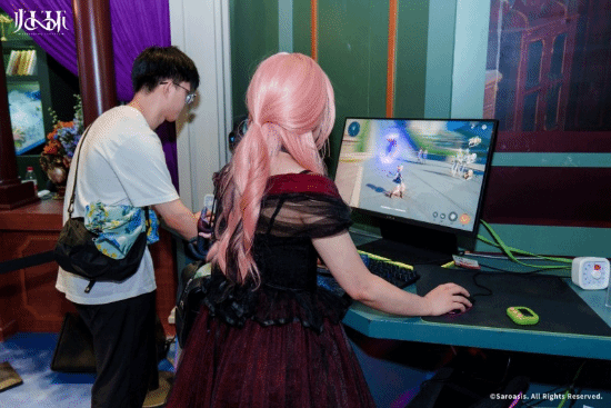 柠好不好、六二二同学领衔超还原COSER阵容,集体亮相引爆全场!从国风角色首曝到女仆咖啡厅热舞,玩家不仅能近距离互动,还能触发“深渊彩蛋”——伸手触摸神秘装置,即有机会召唤COSER开启1v1专属契约仪式,沉浸感直接拉满!