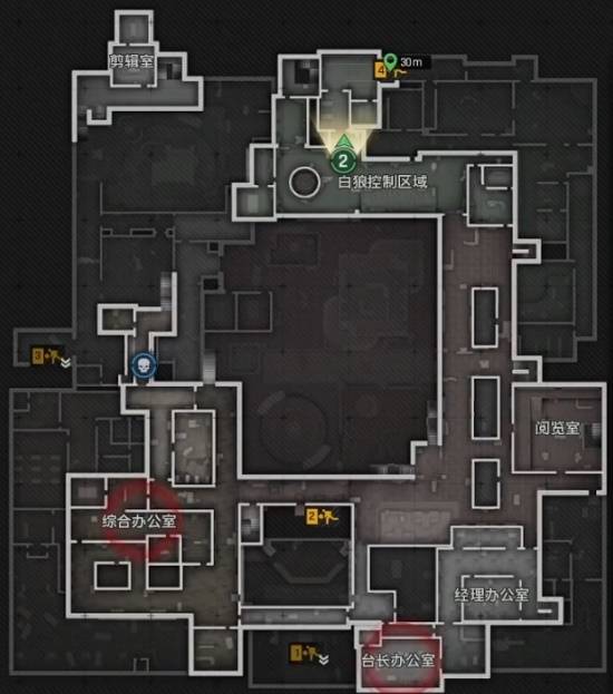 地图总览电视台这张地图是一张完全在室内的地图,交战距离短,危险程度高,共分为2层。