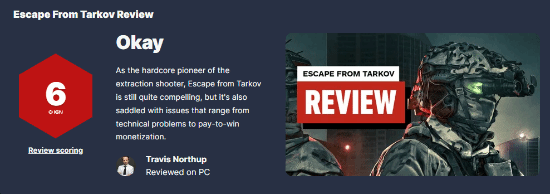 Battlestate Games旗下第一人称射击游戏《逃离塔科夫》1.0正式版于11月份正式发布,同步登陆了Steam平台。外媒IGN今日发布了正式版测评。