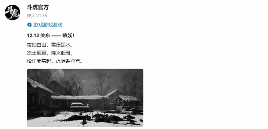 12月4日,《斗虎》游戏官方B站账号发布了一则新动态称:“12.13 关东——镇妖!”,或许预告着官方将在12月13日发布游戏的新预告视频,又或是其他最新动向。