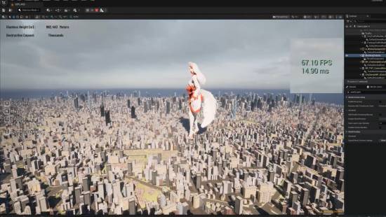 “疯狂的25x25公里程序生成城市,细节完全到位,并且在编辑器中运行稳定在60+FPS!!!破坏系统即将到来。我爱UE5!!!”