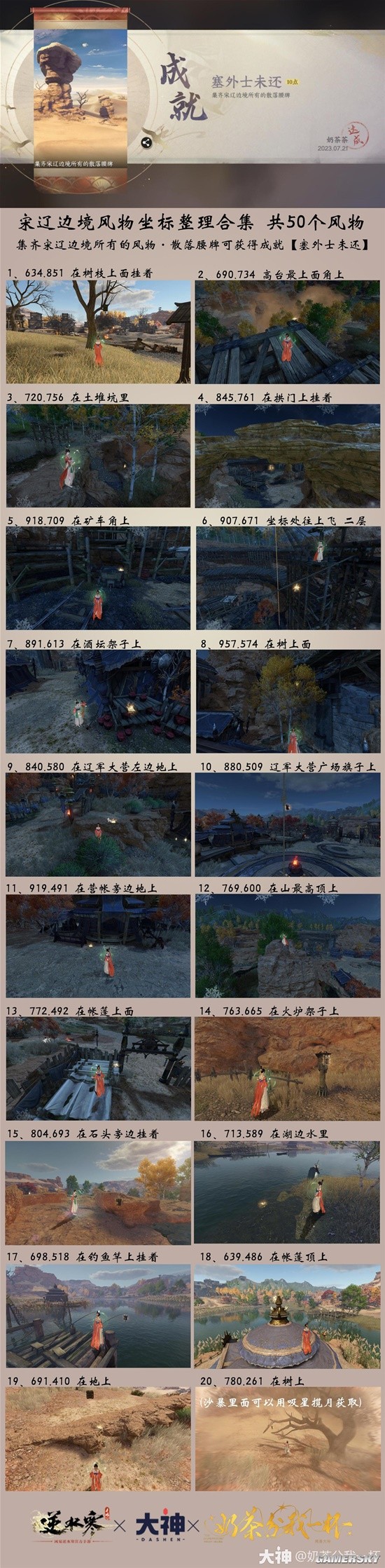 下面给大家带来的是《逆水寒手游》宋辽边境全风物坐标一览,宋辽边境全部50个风物坐标在哪,一起看看吧!