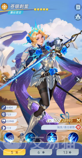 塞拉菲亚:核心机制为精准打击与高生存韧性。开场即对敌方全体施放100%物理伤害,该伤害无视护盾;每回合开始时,对其正前方单位发动单体攻击,若目标空缺,则锁定敌方攻击力最高者施加“曙痕”状态——使目标治疗效果降低50%,且所有负面状态不可清除。其四段连击可集中攻击生命值最低的敌人,总伤达298%物理伤害,全程无视灵魂链接分摊,并额外附加30%真实伤害。自身获得攻击 25%、生命 20%、伤害 10%增益;当受到致命伤害时,立即清除敌方全体增益,并以50%最大生命值复活,进入“蔷魄涅槃”状态,获得可格挡2次伤害的护盾。