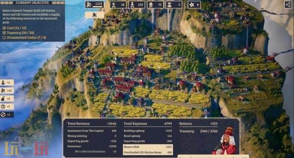 当你在恶劣环境中求得生路,精心建立起高效的运输网络,又能满足镇民的需求后,唯一的挑战便是:征服巅峰!为了实现这项伟业,你需要建立一条安全道路,将大量资源送往山顶。请千万小心——山顶是偏远的危险地区。不过努力终将得到回报,因为建造顶峰圣殿是人类战胜自然的终极象征!