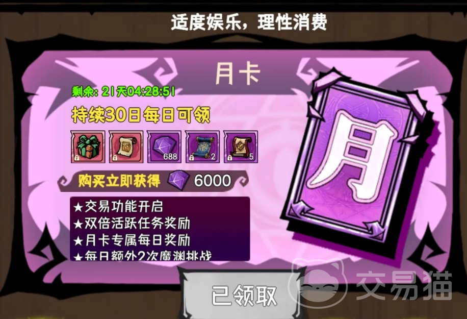 若希望全面解锁游戏功能并提升日常效率,30元月卡是性价比极高的入门选择。开通后即可开放摆摊交易系统,每日领取解绑符,稳定获取钻石与副本门票等核心资源。它不仅是功能门槛,更是构建可持续养成节奏的基础支点,以较低成本打开整套游戏生态。