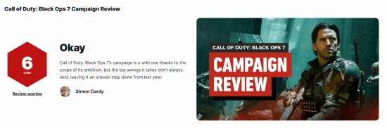 使命召唤22:黑色行动7》于今日正式发售,战役模式的媒体评分已全面解禁。IGN给予了6分的评价,认为《COD22》的战役模式因其宏大的野心而显得狂野不羁,但它所采取的大胆尝试并非总能成功,导致与去年相比有所退步,显得不够均衡。《使命召唤:黑色行动7》的战役模式因宏大的野心而显得狂野不羁。虽然并非每次尝试都能成功,但其11个任务带来的游玩体验仍足以让人乐在其中——至少以官方主推的合作模式游玩时,它绝非平庸之作。
