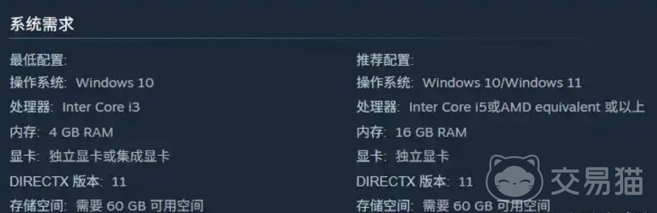 《罪金游戏》最低配置要求如下:操作系统需为Windows 10(该版本在驱动兼容性与系统调度效率方面表现更优);处理器至少为Intel Core i3系列或同级AMD产品;内存不低于4GB RAM;显卡支持集成方案(如Intel UHD Graphics 630)及入门级独显(如NVIDIA GeForce GT 1030),实际画质表现取决于GPU性能;安装所需存储空间为60GB可用硬盘容量。