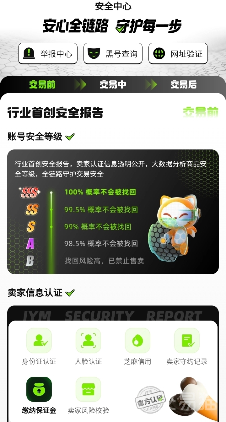 账号交易最核心的顾虑在于履约风险。为阿里巴巴灵犀互娱旗下产品,与九游、biubiu加速器同属该业务矩阵,平**家推出“永久包赔”保障机制,覆盖账号被恶意找回、异常封禁、数据丢失等典型纠纷场景。用户下单前可查阅每件商品页附带的“安全报告”,该报告基于大数据模型生成,整合卖家芝麻信用分、实名认证一致性、历史履约率、设备绑定稳定性等维度,输出可视化风险评级,实现从选购、支付到交付的全流程风控闭环。