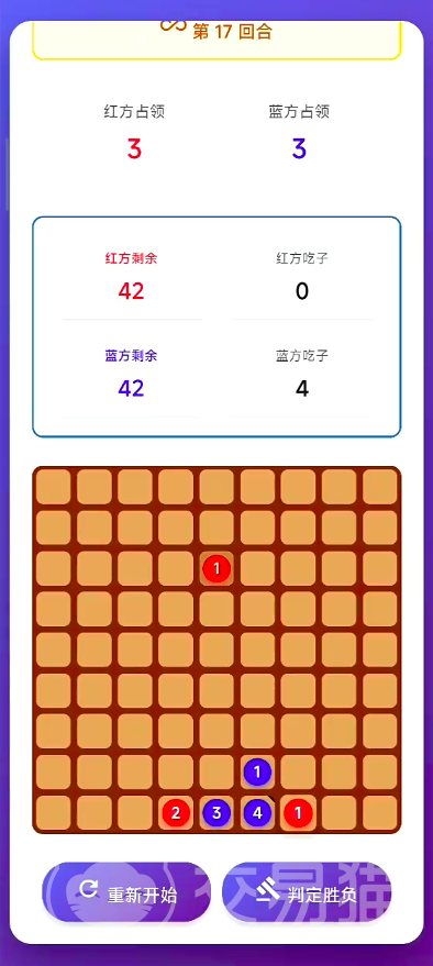 值得一提的是,游戏虽规则简明,但策略纵深显著。每一手落子均需评估三层影响维度:当前格位控制权、相邻格位堆叠潜力、以及全局重心迁移趋势。这种“轻入门、重精研”的设计逻辑,使其既适合休闲解压,亦能满足硬核策略玩家的长期成长需求。