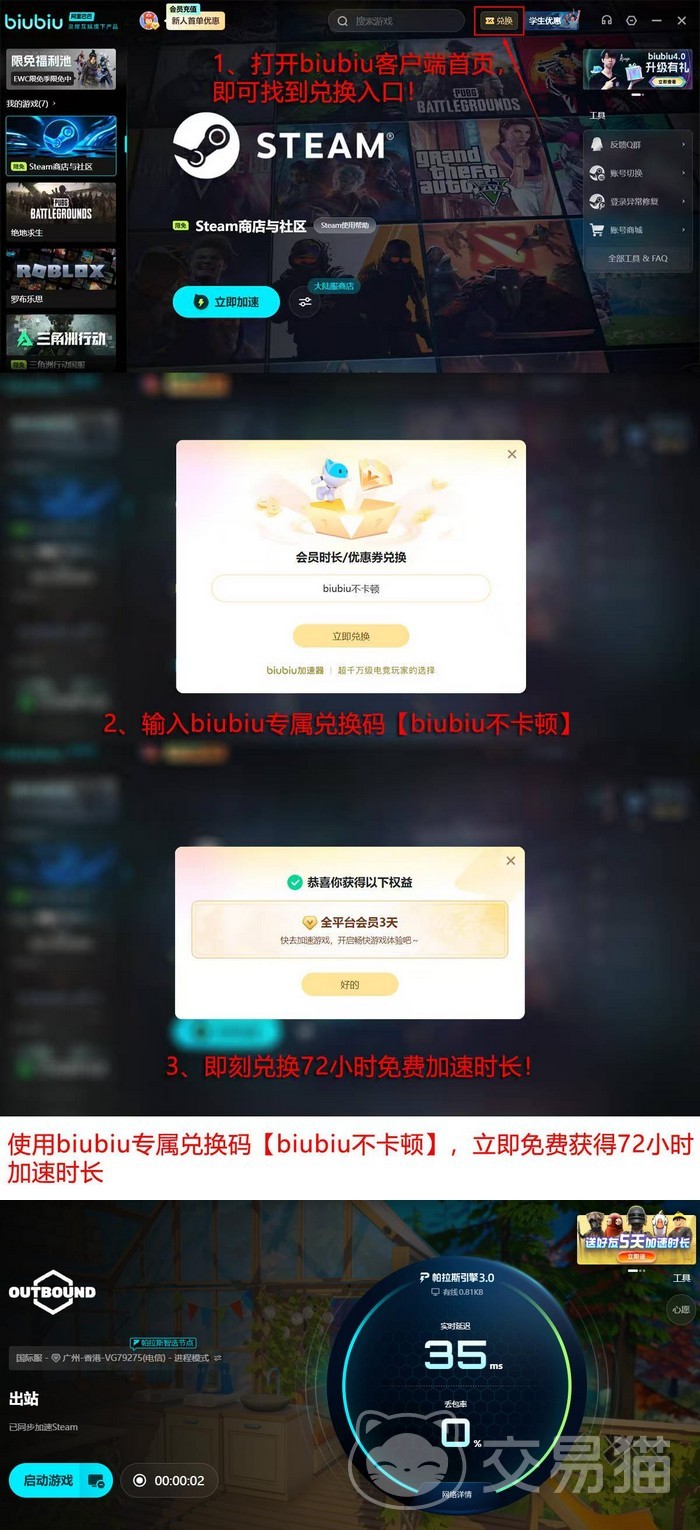 biubiu加速器持续迭代核心技术,当前已升级至第三代帕拉斯引擎,显著增强节点智能调度与协议适配能力,获得专业玩家群体广泛认可。知名战术竞技赛事选手XDD曾作为技术体验官参与本轮调优测试。在用户权益方面,新注册用户可享24小时免费试用,叠加“biubiu不卡顿”兑换码所赠3天会员权益,总计达96小时高品质加速服务。