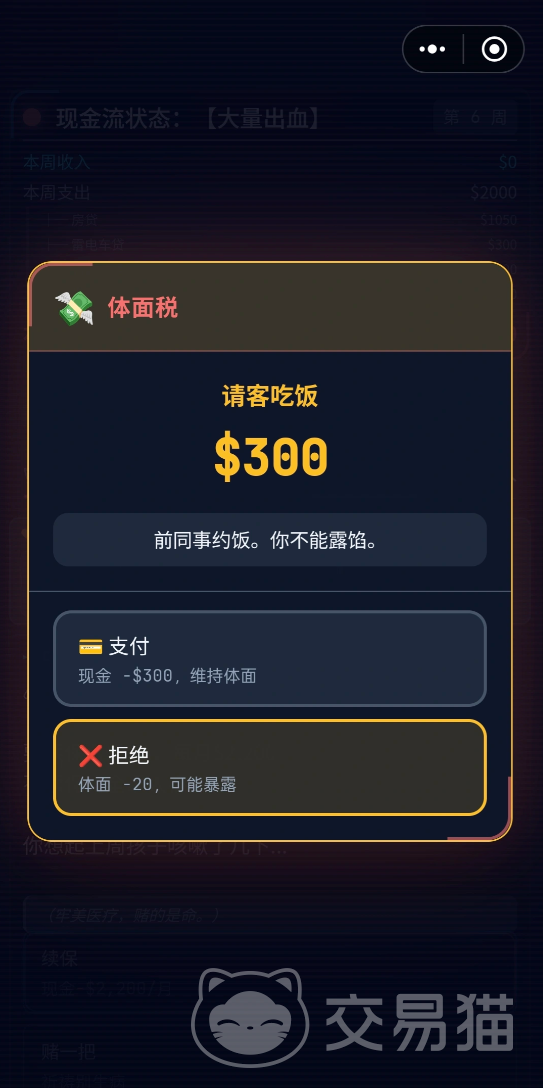 游戏内存在多类动态经济事件,例如“体面税”等突发支出场景。若未能及时满足数值要求,角色将面临坠入“斩杀线”的风险。此时,合理使用兑换码可有效缓解资源压力,提升决策容错率。