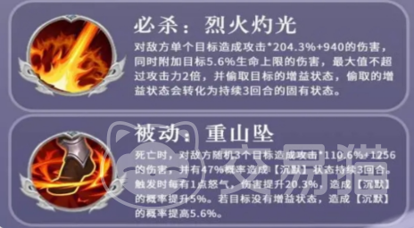 张郃“五毒嗜血”属持续压制类范围技:造成中等范围物理伤害,并使命中目标陷入中毒状态,每回合损失最大生命值3%(持续3回合)。该效果在敌方减员或防御薄弱阶段尤为致命,契合其“巧变善守、后发制人”的战场风格,是瓦解敌方持久作战能力的核心手段。