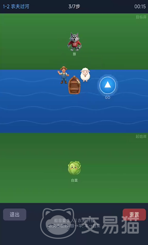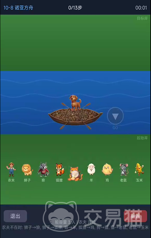 核心玩法围绕“运输限制”与“角色冲突”两大维度展开:每艘船承载人数有明确上限;部分角色不可共乘一船;个别单位具备自主驾船能力;部分关卡还引入时间变量或动态障碍。玩家必须通过反复试错与路径预演,在满足全部硬性条件的前提下,达成全员无损渡河目标。
