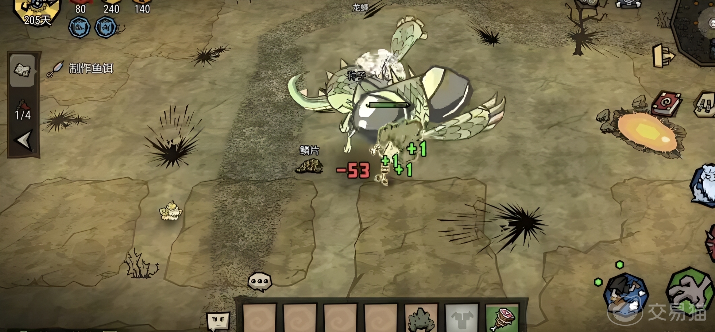 资源合成体系覆盖生存全周期需求。例如,以碎石 草 树枝可合成火把,保障夜间视野并驱散低等级怪物;燧石 树枝可打造石刀,显著提升农作物收割与植物采集速度;选址于水源旁或旧村落遗址建家,不仅便于取水与防御,更支持设置烹饪锅、床具及鸟笼等关键设施——休息可同步恢复生命值与理智值;篝火烹饪可激活食物增益效果;鸟笼驯养宠物后,可在Boss战中提供辅助攻击或状态干扰能力。