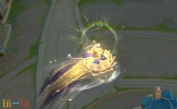 二技能:快速位移,在原地留下虚影轮廓,金色流光拖尾随身而动,金莲在脚下步步绽放。