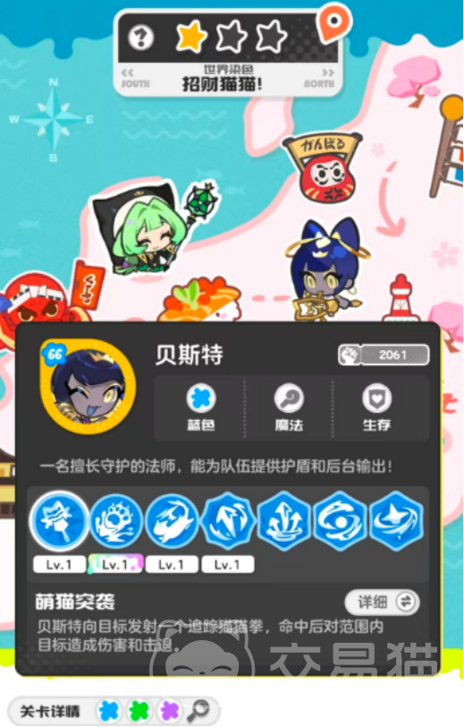 贝斯特作为绿色系法师,核心技能为发射追踪型“猫猫拳”,命中后触发高额范围伤害与击退效果;同时具备全队护盾生成能力,可长期维持队伍减伤状态。其后台输出稳定,在移动中配合地图快速位移标识,能灵活调整站位,持续提供防御支援与火力补充。