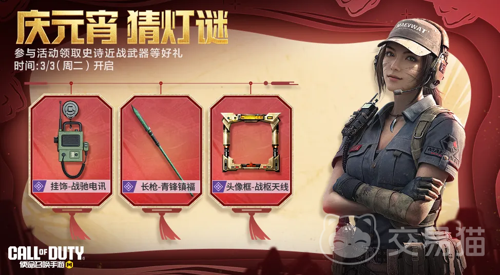 自3月6日起,持续至4月30日,开启“传说武器自选计划”。活动共提供9款传说级武器供玩家自主选择。参与方式为:每周完成指定对局任务积累能量点,单周最高可获得4点,累计满16点即可兑换任意一款目标武器,最快四周期达成全收集。此外,每周首次分享活动链接,可领取“传说武器体验自选宝箱”,内含多把高人气武器的限时使用权。3月3日同步上线元宵主题互动——灯谜竞答,答对题目即可获取史诗级近战武器“青锋镇福”及其他稀有资源。