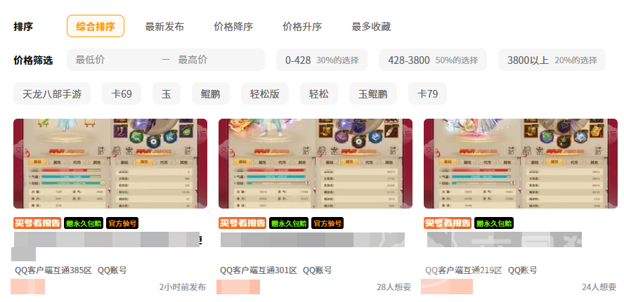 平台汇聚大量活跃买家,日均天龙八部手游交易订单量稳居行业前列。合理定价的账号通常可在24小时内达成成交。此外,回流玩家亦可借助平台筛选功能,快速定位具备高等级、满神装、高资源储备(如元宝余额、绑定元宝、稀有坐骑、绝版时装)的优质账号,节省重复养成时间。