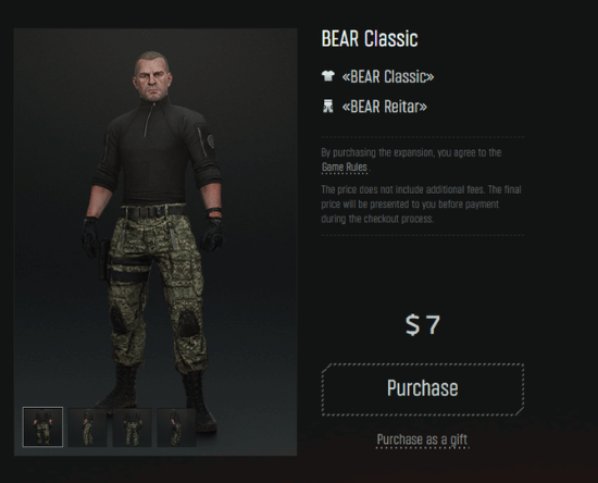 针对这次启动故障,官方宣布向所有玩家提供游戏内物品套装 “Bear Classic” 和 “USEC Night Patrol” 作为补偿。已经购买过这些套装的玩家将获得额外的游戏内奖励。