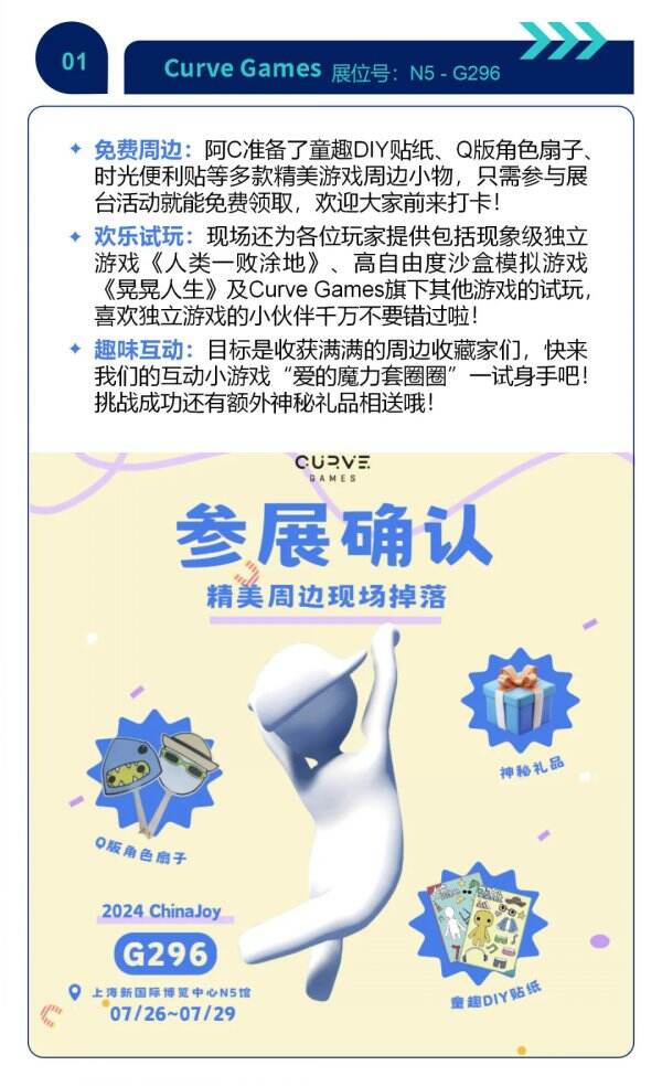 继前次揭秘首批展商精彩内容,引发广大玩家关注之后。今日,我们将再度揭晓新一轮展商的亮点活动!此次带来全新内容的展商包括:Curve Games、像素蛋糕、墨将、ATK、PXN莱仕达、卡妙思、MCHOSE迈从,他们将共建这场创意无限的内容盛宴,等待着每一位观众的探索。