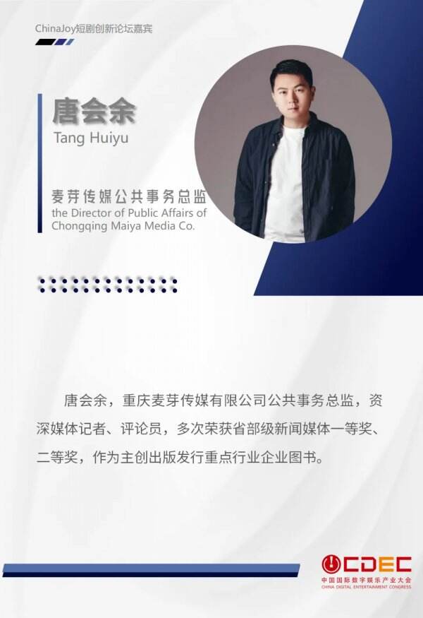 目前,已有多位重磅嘉宾确认出席本届大会并发表主题演讲,现公布首批嘉宾,他们分别为:知名影视制片人 博纳影业集团影视制作副总经理 曲吉小江,娱乐资本论创始人 吴立湘,布乐科技CEO 杨晟,北京聆心智能科技有限公司联合创始人、CEO 郑叔亮,开心麻花影业常务副总经理 李凤华,生数科技产品总监 张旭东,互影科技首席执行官 鹍鹏,猫片传媒执行董事、万维猫动画执行董事 陈旻,加拿大海归青年电影人 林渤淪,御今文化CTO 鲁恩文,麦芽传媒公共事务总监 唐会余。