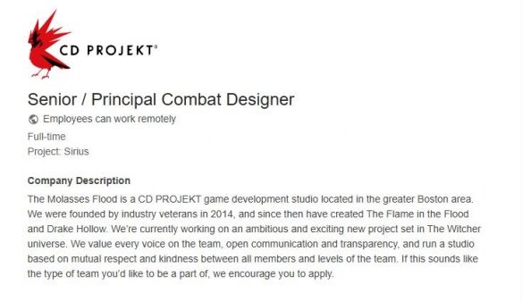 CD Projekt近日发布的招聘广告中显示:寻找高级/首席战斗设计师加入《巫师》衍生游戏代号为“Sirius”项目的团队。招聘广告的节选提到了“Sirius”是一款多人动作游戏。