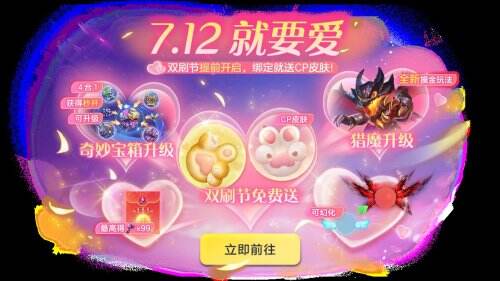 《球球大作战》还将在活动中为大家送上超大钥匙红包、千万金蘑菇红包以及限定情侣关键词皮肤,为双刷节平添甜蜜氛围。球宝只要和自己认定的双刷节搭档绑定为CP,即可免费获得限定情侣关键词,让萌宠的萌爪伴随你们左右!