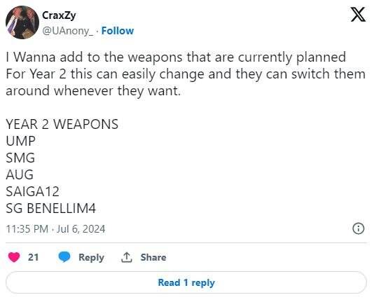 最后,游戏第2年的武器也曝光了,武器如下: