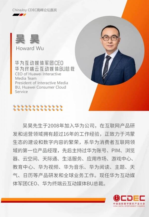 目前,已有多位重磅嘉宾确认在本届论坛发言,他们分别为:华为互动媒体军团CEO、华为终端云服务互动媒体BU总裁 吴昊,高榕创投董事总经理 马晓宇,TCL实业副总裁、雷鸟创新创始人兼 CEO 李宏伟,Stripe大中华区商务负责人 Louise Lu,上海大学上海温哥华电影学院教学副院长 迪恩·伯恩斯,西山居副总裁 姚喆,美ONE副总经理、AI及创新事业部负责人 徐戌雄,北京分子互动文化传播有限公司CEO、动漫IP《非人哉》出品人 徐博,BOM嘻番里项目总经理、首创郎园助理总经理 梁一帆,鲸焱斐凡影业创始人 夏焱。
