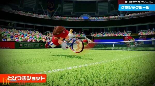 本作强调丰富多变的击球方式,旨在让各类玩家都能享受连续对打的乐趣。游戏的核心新机制是“狂热球拍”系统,提供30种具有特殊效果的球拍。例如“冰结球拍”可冻结部分场地,“影子球拍”能创造球员分身,“迷你蘑菇球拍”则可召唤使对手缩小的蘑菇。玩家可从系列最多的38名角色中选择选手,并结合不同球拍搭配出独特战术。