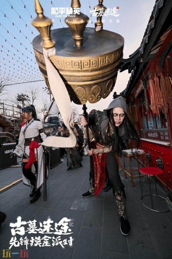 1月9日至11日期间,伴随“古墓迷途先锋摸金派对”的开展,《和平精英》亦在北京潘家园特别举办"古墓迷途马上试玩会"线下体验活动。本次活动不仅提供了新模式的首批实机体验机会,更通过还原游戏内古墓场景的系列互动装置,打造沉浸式"摸金搜打撤"主题体验区,让玩家亲历现实版"护宝撤离"冒险。