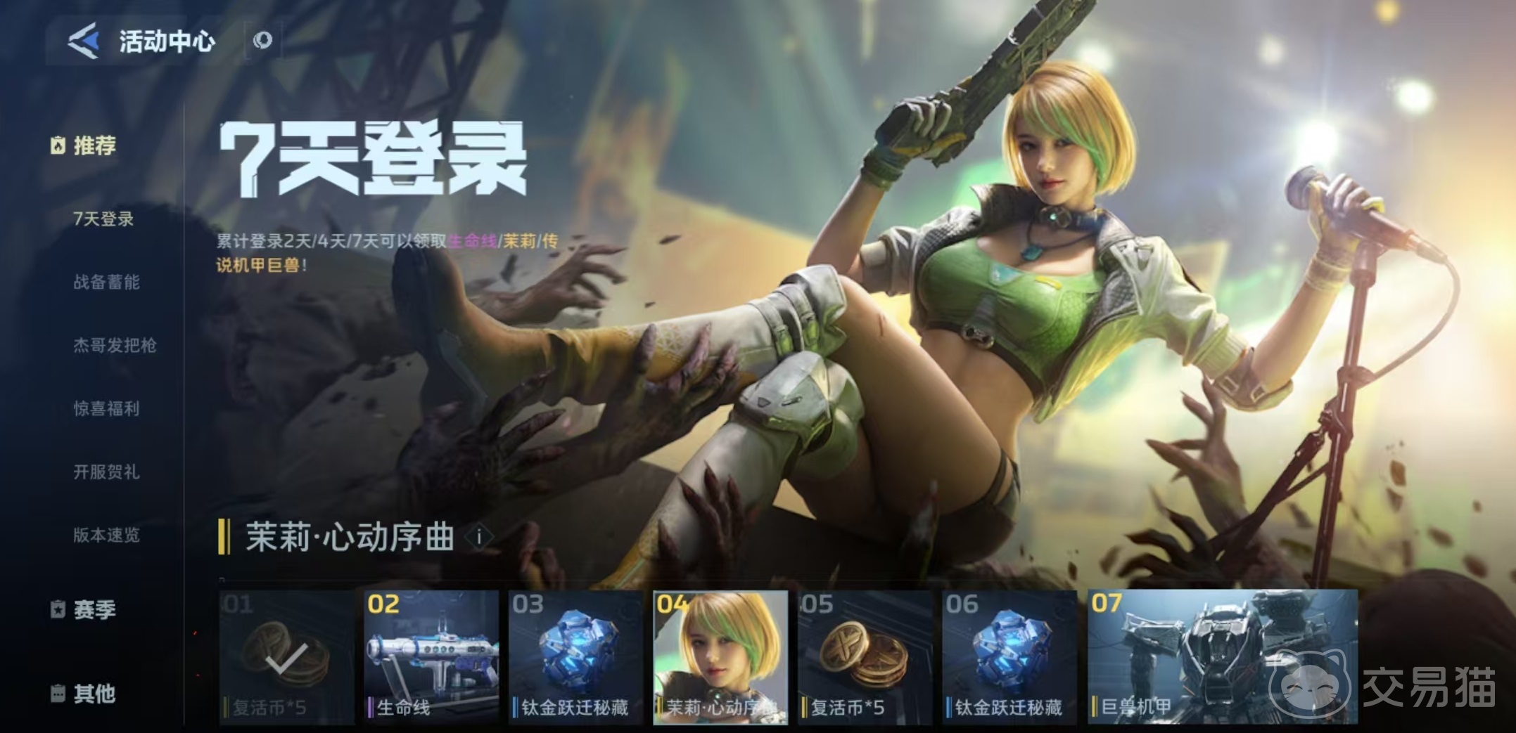 “茉莉·心动序曲”以清新活力的校园风为设计基调,融合轻盈动感的造型细节,精准契合角色背景设定——曾为校园歌手的茉莉,如今以自信姿态步入战术战场。该皮肤可通过游戏内常规活动直接获取:参与开服阶段的“七日登录计划”,累计签到满四天即可无门槛领取,全程无需额外付费或复杂操作,适合新老玩家同步入手。