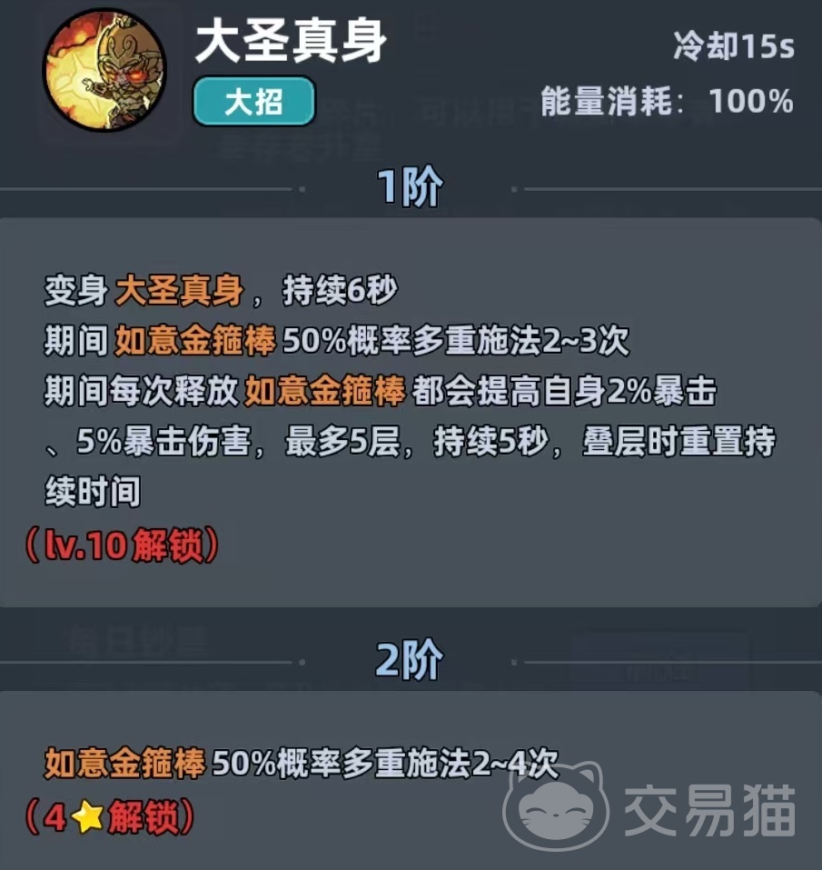 终极技能“大圣真身”持续6秒,在变身期间,如意金箍棒每次触发均有概率进行多重施法,形成高频连段输出;每次成功施法则同步提升自身暴击率与暴击伤害,且效果可叠加。这一机制使其在PVE推图与PVP对抗中均展现出极强适应性——既可快速瓦解精英怪护盾,亦能对高血量目标打出毁灭性爆发。值得注意的是,角色升至三星后,暴击属性迎来质变式跃升,尤其克制带盾敌人与高防御精英单位。在属性优先级配置上,推荐按暴击率>暴击伤害>攻击力>最终增伤>攻击速度的顺序进行资源倾斜,所有养成动作均服务于强化暴击阈值与瞬间输出上限。