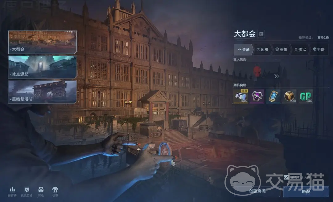 其余三张为“冰点起源”“大都会”“黑暗复活节”,均支持四档难度设定:普通→困难→噩梦→炼狱。各档位在敌人血量、攻击频率、技能强度等方面逐级提升,建议玩家在完成新手引导后,按阶梯式挑战,逐步适应节奏;