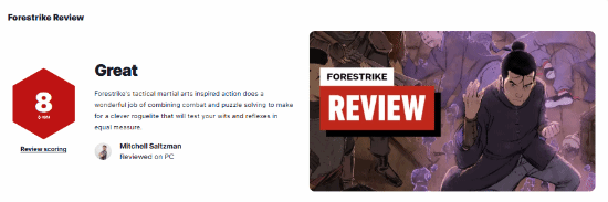 11月20日,外媒IGN为近期功夫题材的roguelite游戏《预视武宗》打出8分评价!称其:“战斗与解密要素巧妙结合,并对武术表达了由衷的敬意。”