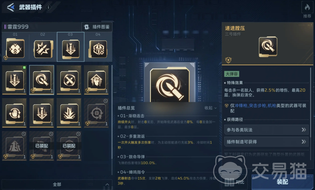 金色插件能为对应武器提供定向强化效果,包括但不限于暴击率提升、射速优化、弹匣容量扩充等核心战斗参数。其基础属性数值更高,等级成长上限也更为突出,是中后期构建高配武器体系的重要支撑。