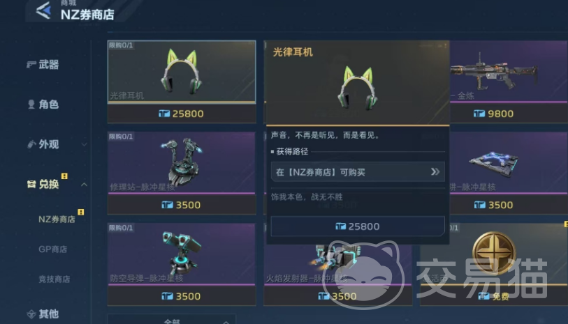 商城是外观获取的核心渠道之一。进入主界面后,依次点击【商城】→【角色】,可浏览含角色本体及附赠外观的限定礼包;部分礼包内含面部装饰、头部装饰等挂饰道具,实现角色与外观同步解锁。此外,在【外观】分类页中设有专属外观礼包,内容明确标注所含部件类型与数量;【兑换】页中的NZ商店则支持使用指定货币兑换光律耳机等高人气外观装备。