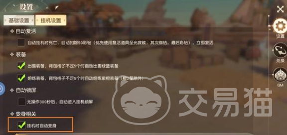 进入天神系统的入口位于主界面右下角,点击即可打开专属面板。需特别注意:默认挂机状态下不会自动触发变身。如需实现全自动高效刷图,须前往【设置】→【挂机选项】中开启“挂机时自动天神变身”;同时建议同步启用【基础设置】中的自动复活与智能装备回收功能——当背包空格少于5个时,系统将自动出售绿色与蓝色品质装备,大幅减少手动干预频率,让资源积累更专注、更稳定。