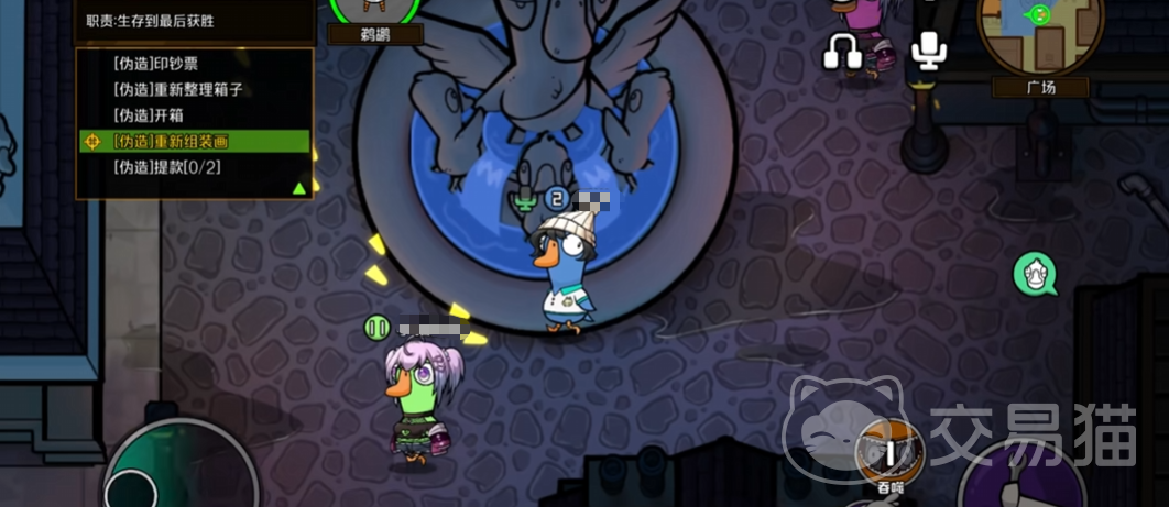 广场区域设有“下毒”任务,仅限鹅阵营执行。玩家需在倒计时结束前抵达地图最右侧红灯区,完成水泵换水操作,方可解除全图中毒状态。超时未完成将导致鹅方阵营失败。该任务具有高暴露风险,鸭子可提前在红灯区附近设伏,优先攻击单独行动的鹅玩家。