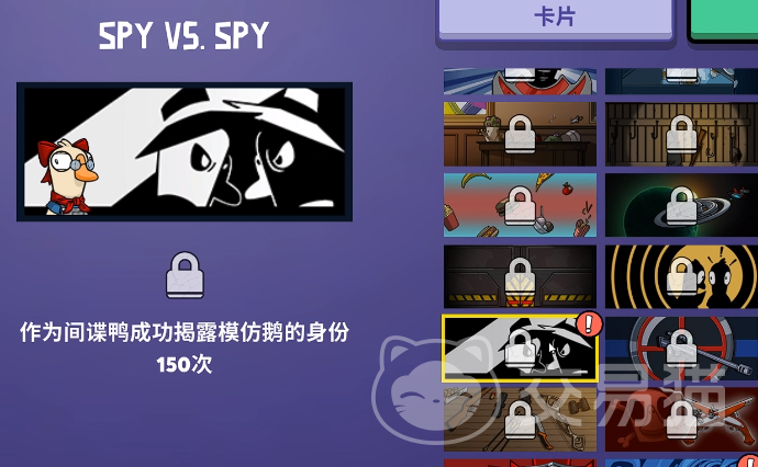 高难度隐藏成就强调重复性行为或特殊场景组合。例如在野鸭庄园内被帝后灯连续命中100次,将激活“错误的地方和时间”;反复击打老鼠100次可完成“猫样反射”;若作为中立阵营乌鸦成功击杀四名其他角色,或在比赛中吞食鸭子尸体并最终获胜,则分别解锁“真正的食人族”与乌鸦专属成就。