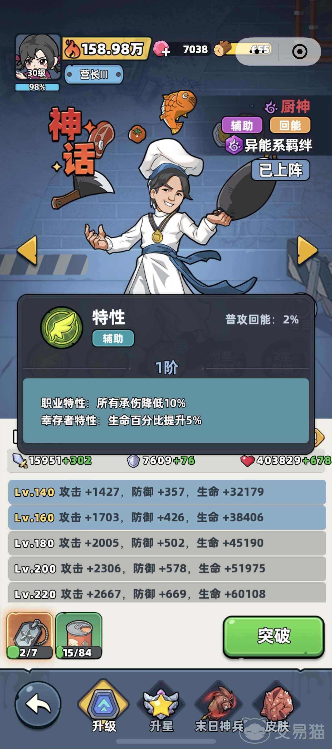 在《生存33天》中,厨神作为神话品质的辅助英雄,凭借稳定的团队增益与高泛用性,长期稳居玩家主力阵容前列。尤其对新手而言,其机制直观、上手门槛低,但实际强度常被低估。本期将系统解析这位高优先级辅助角色的核心定位与实战价值。