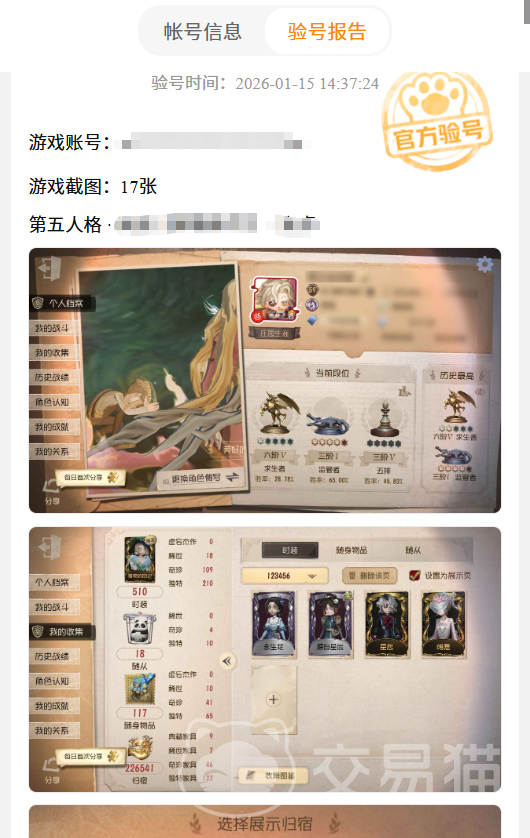 也有的人想充分了解商品内有哪些商品,就想要看一下这些内容。这时部分卖家会将商品委托给平台验货,验货完之后不仅可信度很高。还会将所有的账号信息都一览无遗地展示在上面,大家可以看看是否符合自己的需求。有需要的话直接入手即可,也无需费力地浪费口舌和卖家询问,更加轻松省事!