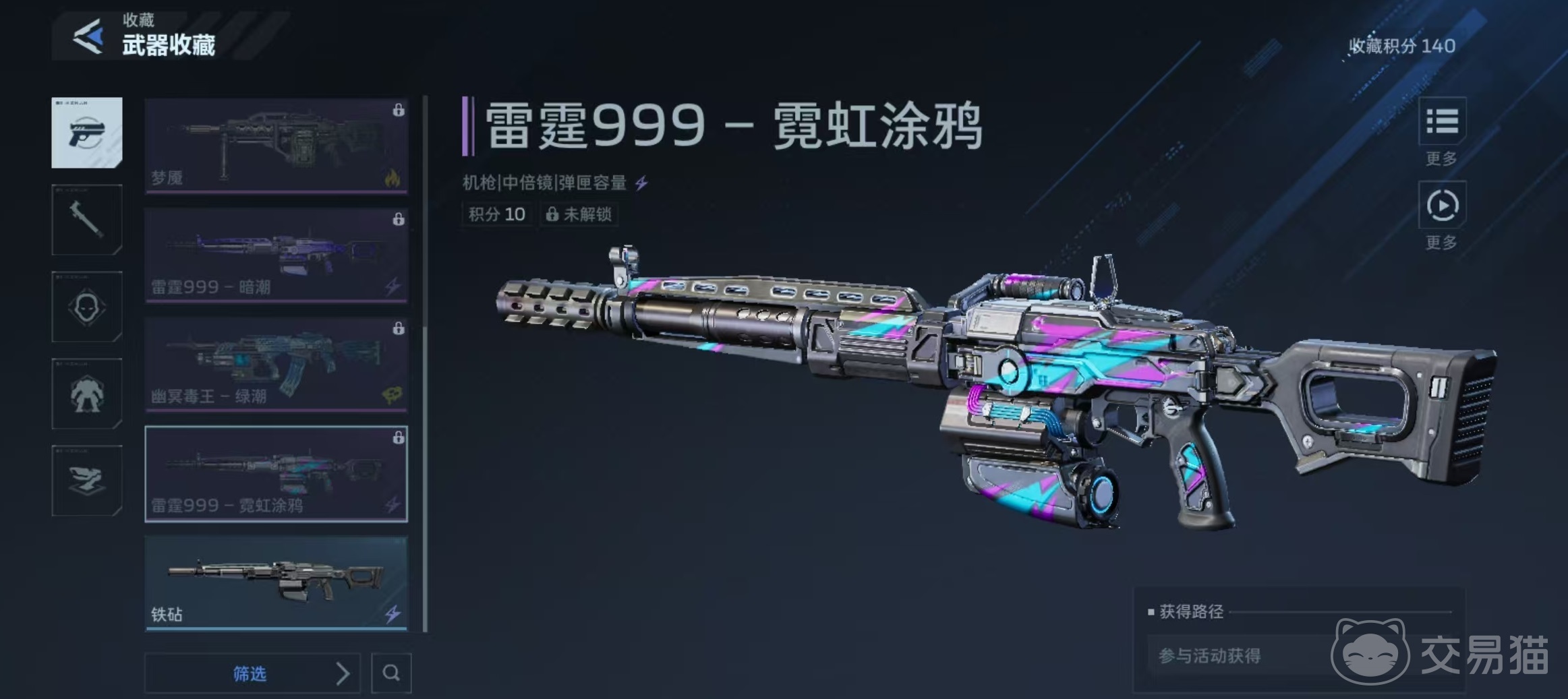 根据当前游戏内数据,“雷霆999·霓虹涂鸦”标注为活动限定获取途径,但截至最新版本,所有已开启的开服活动及限时玩法均未包含该皮肤。由此可判断,该皮肤所属的活动尚未正式上线,因此暂无官方定价、兑换规则及持续周期等详细说明。建议玩家保持关注游戏内公告栏与官网动态,以便第一时间掌握相关资讯。