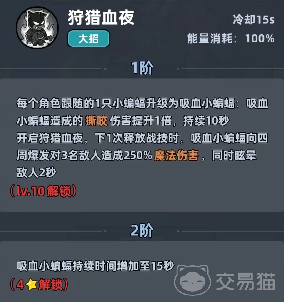 终极技能启动后,所有随行蝙蝠升阶为吸血蝙蝠,单次撕咬伤害提升,并在下一次战技释放时向周围区域爆发,造成范围魔法伤害与眩晕效果。该角色本质是魔法队中的功能型副C,兼具伤害增幅、能量回复、生命续航与群体控制四重作用,尤其适配以忍术大师为核心的高频率技能循环体系。属性养成优先级明确:魔法伤害>攻击>技能急速,确保技能覆盖率与增益叠加效率最大化。