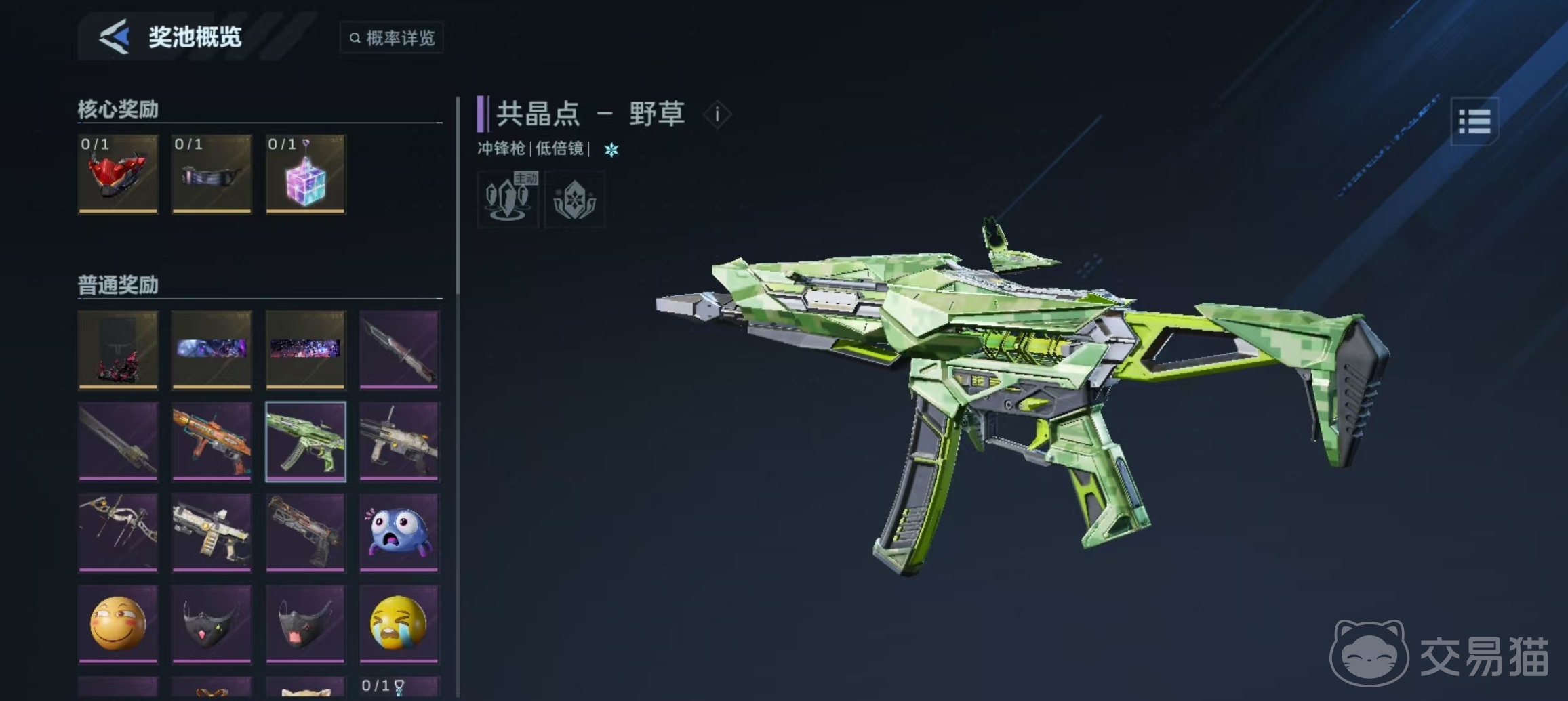 “共晶点野草”并非通过商城直购或任务赠送获得,而是限定于赛季活动中的补给抽取系统。玩家需先进入游戏内【赛季活动中心】,定位至当前开放的赛季补给池界面。该机制采用概率化开启模式,消耗赛季期间获取的补给箱即可参与抽取。奖池结构分为核心奖励与普通奖励两类,而“共晶点野草”归属于普通奖励层级,整体抽取概率为0.82%。在持续投入补给箱的前提下,具备较高的实际获取可行性。