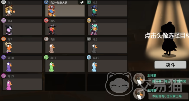 本模式中,会议触发权被严格限定:仅鹅阵营角色可发起首次会议,此举构成初始身份筛查的关键节点。会议流程亦发生本质变化——传统举手投票被“单点指认决斗”取代。会议发起人须在倒计时内指定一名目标角色;若被指认者属于鸭子阵营或中立阵营,则其立即淘汰;若指认对象为鹅阵营成员,则需等待倒计时归零后该角色离场。值得注意的是,会议期间所有角色技能均处于禁用状态。