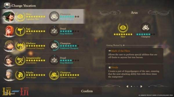 —主角和队友一开始都有独特的初始职业,但之后可以更改。
