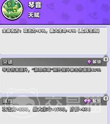 其核心光环之一为暴击伤害提升效果,可使全队暴击伤害提高20%,显著放大高暴击流派的输出上限;另一关键光环提供10%的全队基础攻击力加成,在多数战斗场景中均能稳定提升DPS表现。