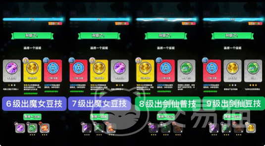 技能选取存在明确优先级序列,新手易误判。当同时出现觉醒技能与升级类技能(如“升级豆技”)时,应优先选择后者——因主C完成觉醒后,其专属觉醒技能的刷新概率将大幅提升。操作顺序应为:先确保主C全部输出技能到位,再回头补足觉醒技能。完整优先级为:① 主C输出技能 → ② 主C觉醒技能 → ③ 其他角色输出技能。重要避坑提示:主C尚未觉醒前,切勿提前解锁辅助或挂件角色的觉醒技能。一旦任意非主C角色先行觉醒,将额外追加3个蓝色进阶技能,大幅稀释技能池,加剧选择难度。