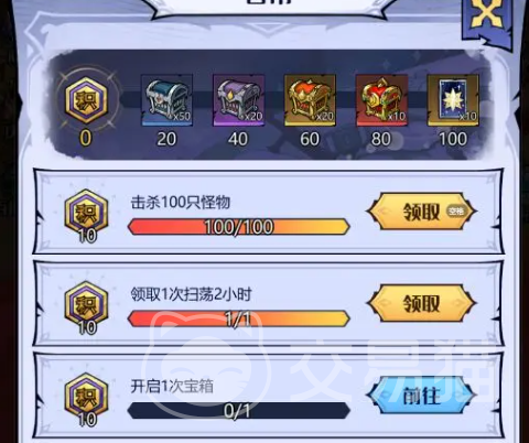 日常任务于每日0点重置,任务目标简洁明确,单次完成耗时短、回报稳——保底奖励为10张抽奖券。典型任务包括:击败100只怪物、领取一次两小时扫荡收益、领取两次挂机奖励、开启一个宝箱。在主线推进至对应节点后,应立即参与“历练之塔”挑战。该玩法初期关卡难度平缓,每通关一层均可获得角色升星材料与抽奖券。持续挑战不仅加速资源累积,更有助于熟悉各角色技能衔接逻辑与战斗机制响应节奏,建议每日满层数挑战,不遗漏任何一层奖励。